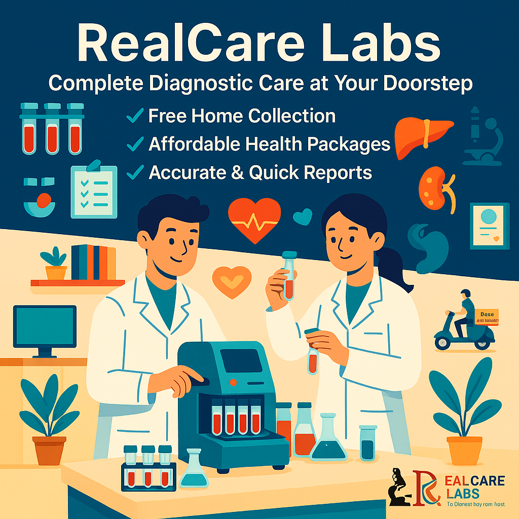 RealCare Labs offers affordable, accurate, and certified diagnostic services with FREE home collection, online reports, and quick turnaround time.